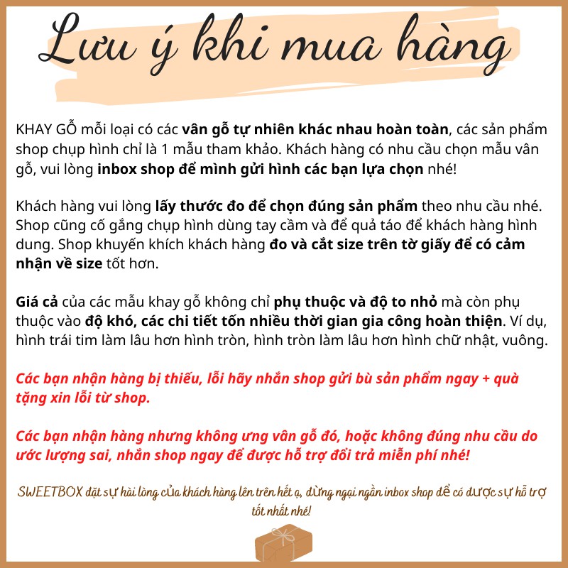 CÁC SẢN PHẨM TỪ GỖ NÊN SẼ CÓ CÁC VÂN GỖ TỰ NHIÊN PHỤ THUỘC TÍNH CHẤT KHÚC GỖ NGUYÊN LIỆU. NẾU BẠN CÓ NHU CẦU CHỌN SẢN PHẨM THEO VÂN GỖ HÃY NHẮN TIN SHOP ĐỂ SHOP GỬI MẪU BẠN CHỌN NHÉ!