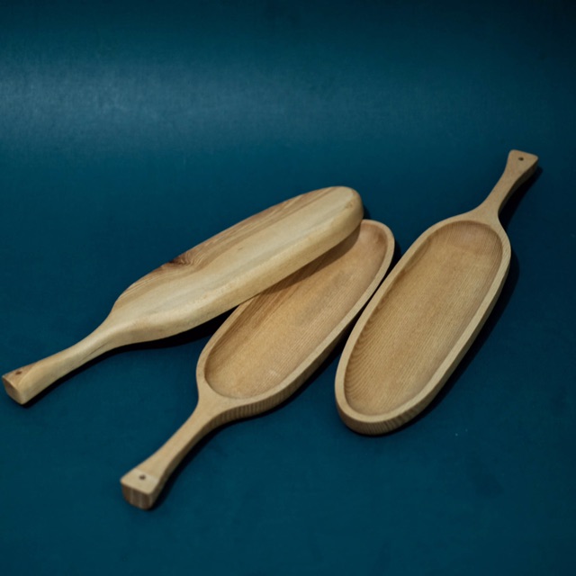 Khay gỗ tay cầm hình trái cây- Được làm từ gỗ tần bì nguyên khối, có màu sáng, trọng lượng nhẹ và vân gỗ tự nhiên, phủ dầu oliu