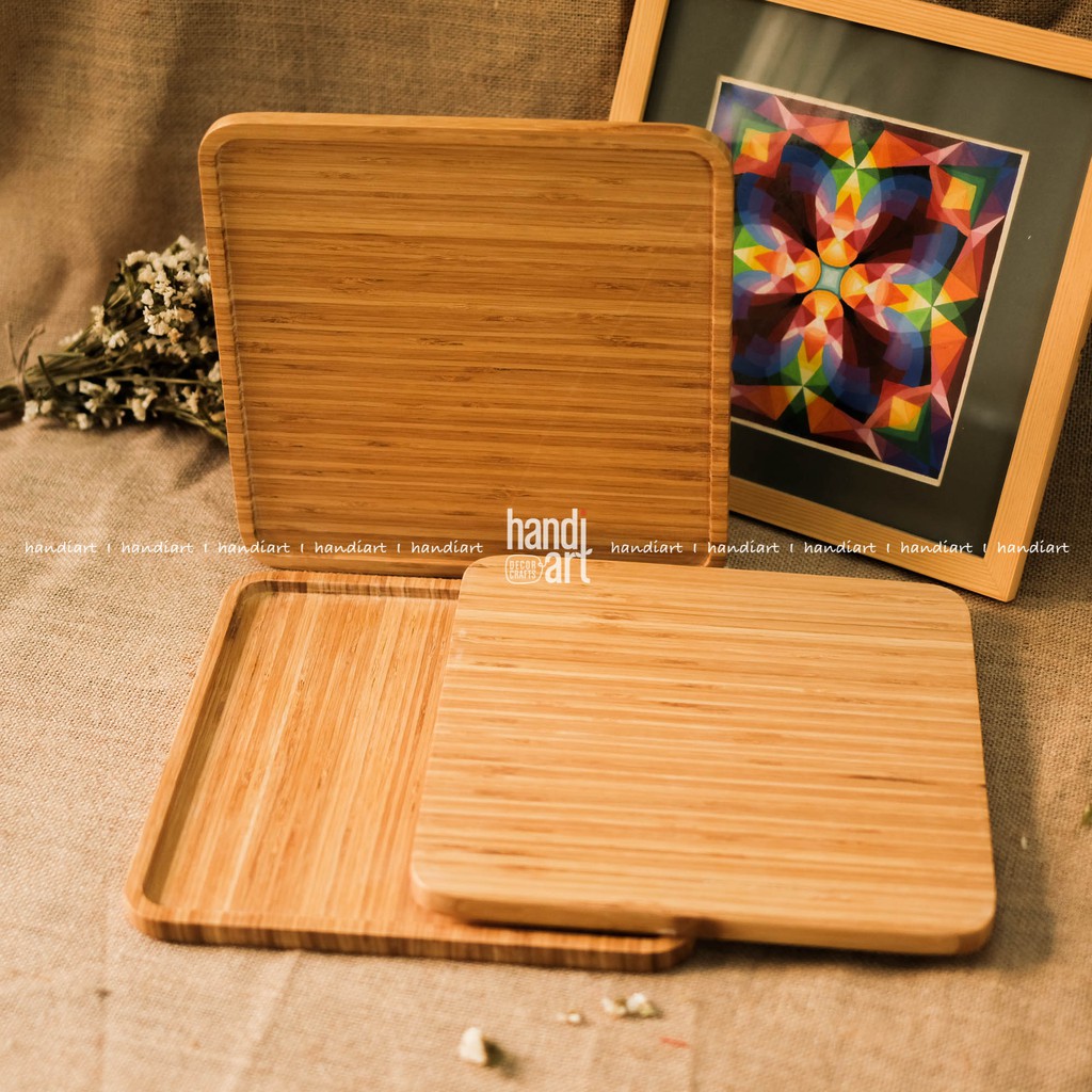 Nhà cửa & Đời sống > Bộ đồ bàn ăn > Khay, tấm lót bàn ăn || Khay gỗ tre hình vuông - Khay gỗ tre đựng thức ăn- bamboo wooden trayCòn hàng