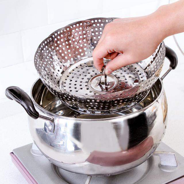 - Sản phẩm xửng hấp inox có thể mở ra hết cỡ và thu lại gọn gàng khi không cần sử dụng.