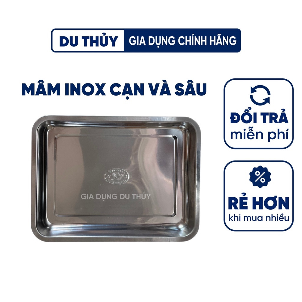Nhà cửa & Đời sống > Bộ đồ bàn ăn > Khay, tấm lót bàn ăn || Khay inox chữ nhật loại cạn và sâu đủ size dùng làm mâm phục vụ chất liệu inox sáng bóng của gia dụng du thủyCòn hàng
