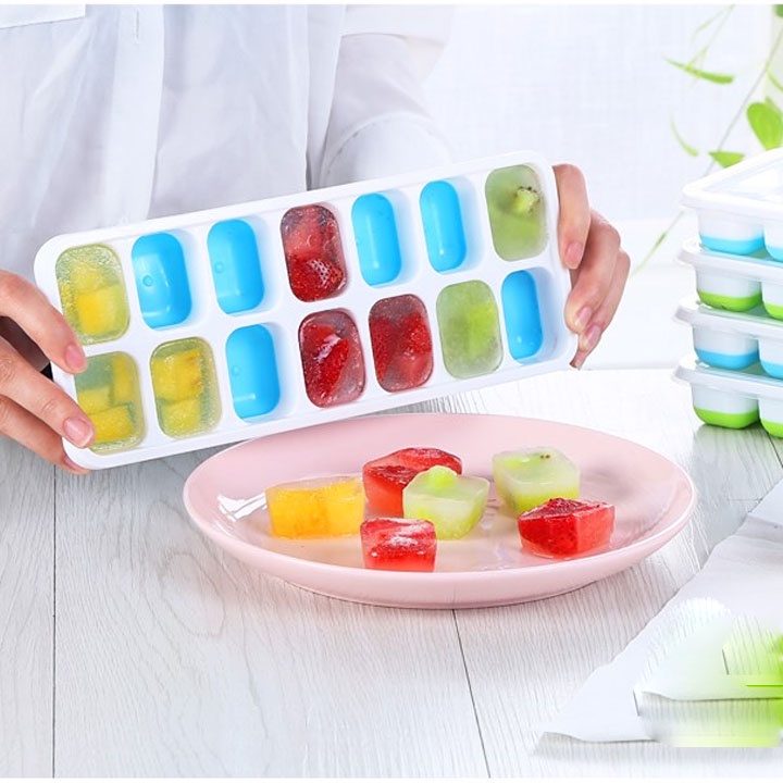 Khay làm đá đế silicon, 14 viên, có nắp đậy, làm đá thạch kem dễ dàng, đảm bảo vệ sinhƯu điểm nổi bật của sản phẩm: