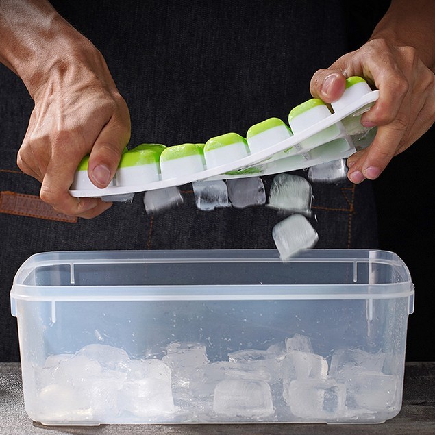 - Khay làm đá được sản xuất từ nhựa chịu nhiệt,đáy silicon mềm giúp việc sử dụng dễ dàng hơn.