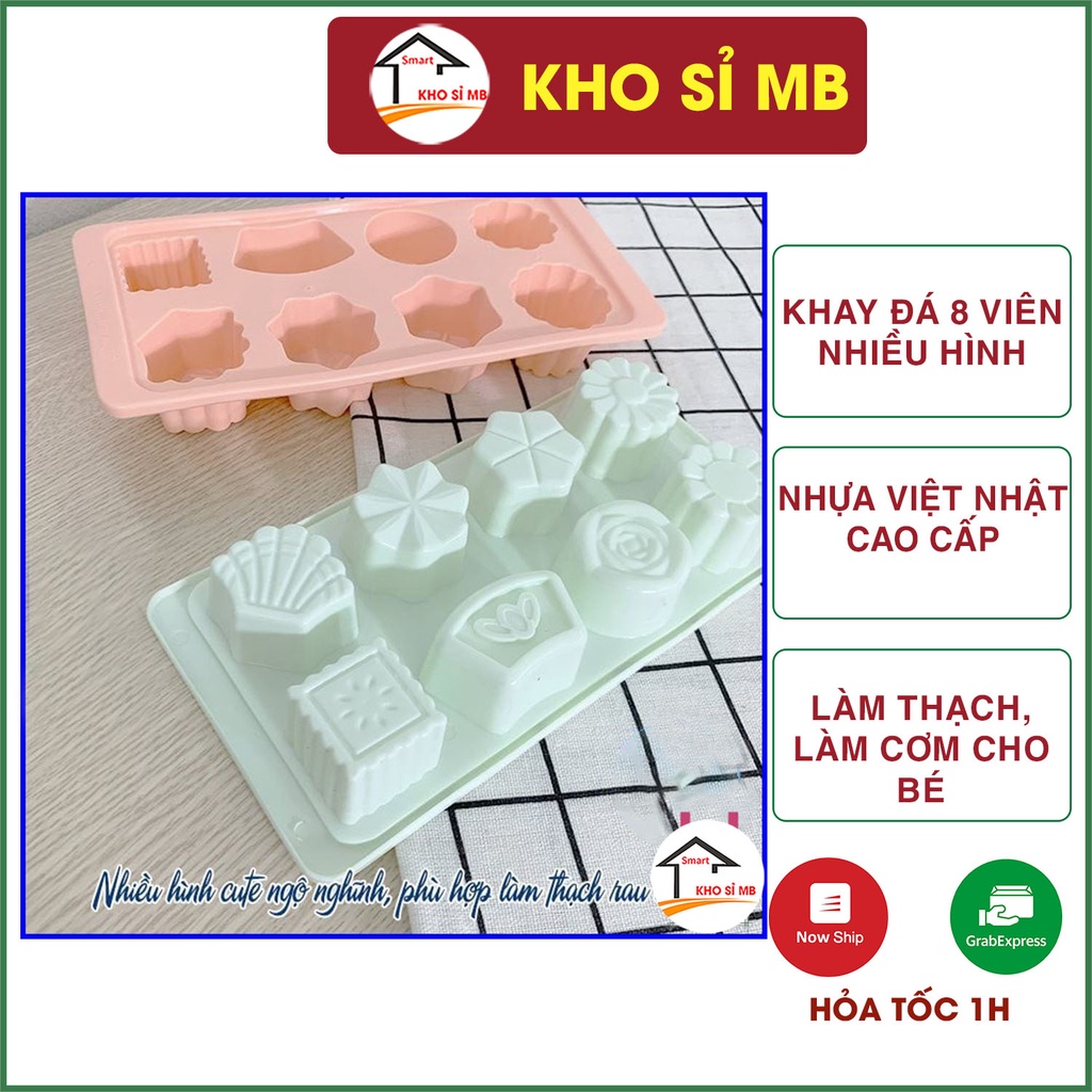 khay làm đá tủ lạnh, làm thạch 8 viên nhiều hình lạ mắt nhựa việt nhất dẻo kho sỉ mb