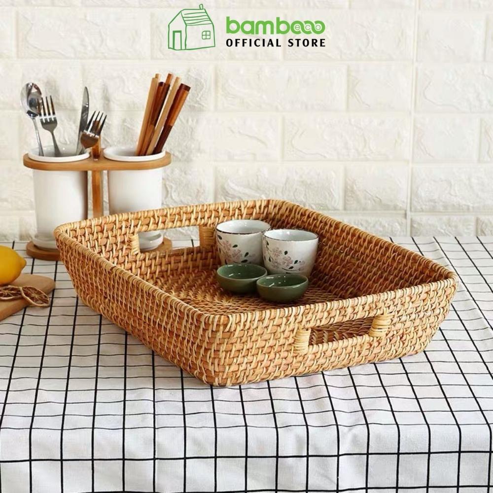 Khay mây đan thủ công BAMBOOO ECO vát đáy đa năng đựng ấm trà bánh mỳ màu sắc tự nhiên