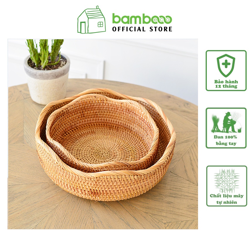 Khay mây decor trang trí BAMBOOO ECO rổ đựng đồ đa năng đan thủ công