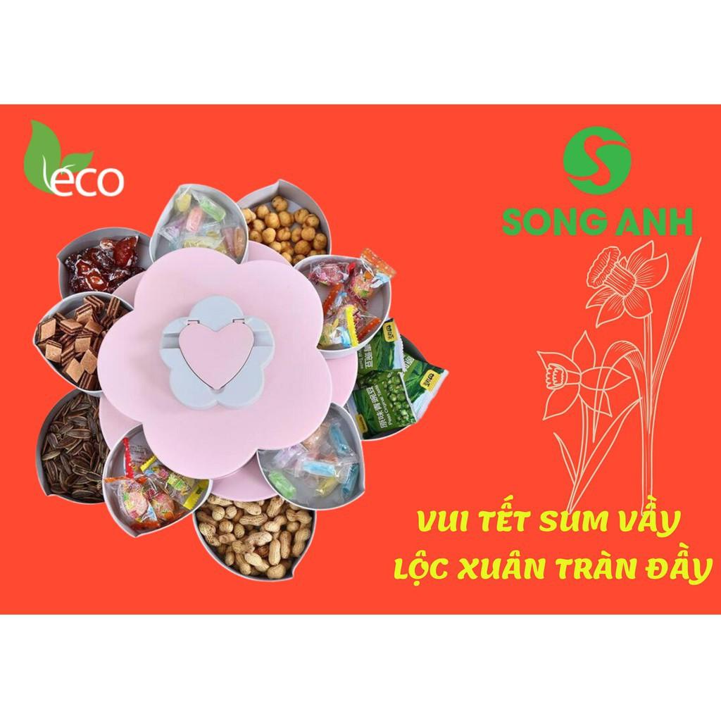 » Khay được thiết kế hình bông hoa 2 tầng mỗi tầng 5 cánh là 5 ngăn đựng, xoay ra xoay vào rất đẹp mắt và gọn gàng.