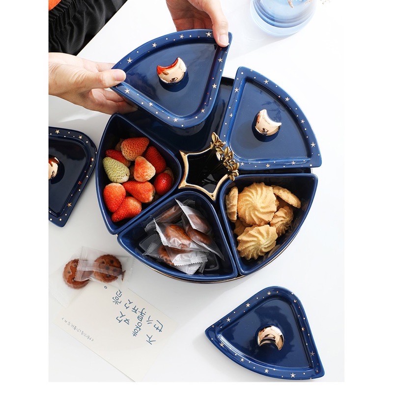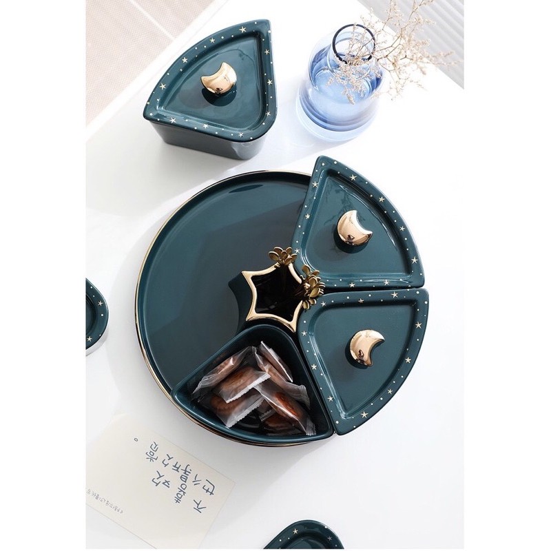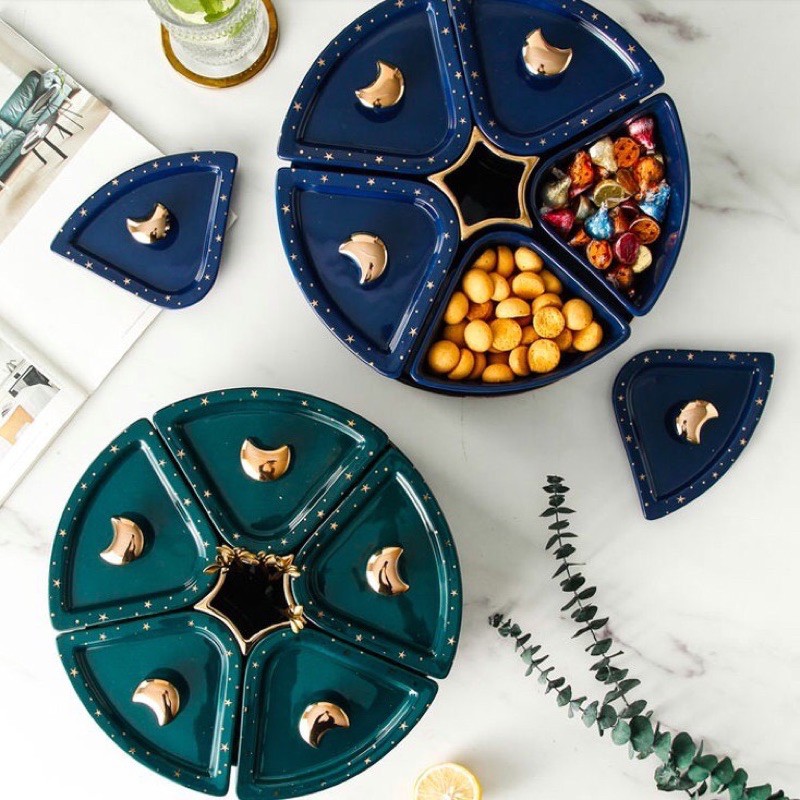Nhà cửa & Đời sống > Bộ đồ bàn ăn > Dĩa || Khay mứt Tết cao cấp, Khay mứt đế xoay Ngôi Sao kèm dĩaCòn hàng