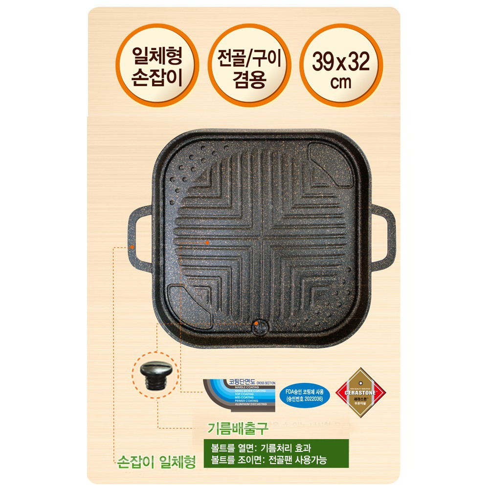 ☛ Thiết kế Hàn Quốc phù hợp với nhiều món nướng, có lỗ thoát mỡ tiện lợi, giúp thực phẩm ngon hơn.