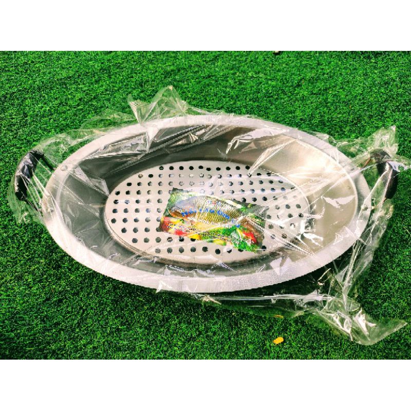 Khay om cá inox kèm vỉ hấp dùng mọi loại bếp đa năng, Vỉ hấp cá hấp bê thực phẩm đa năng không kén bếp size to tiện lợi