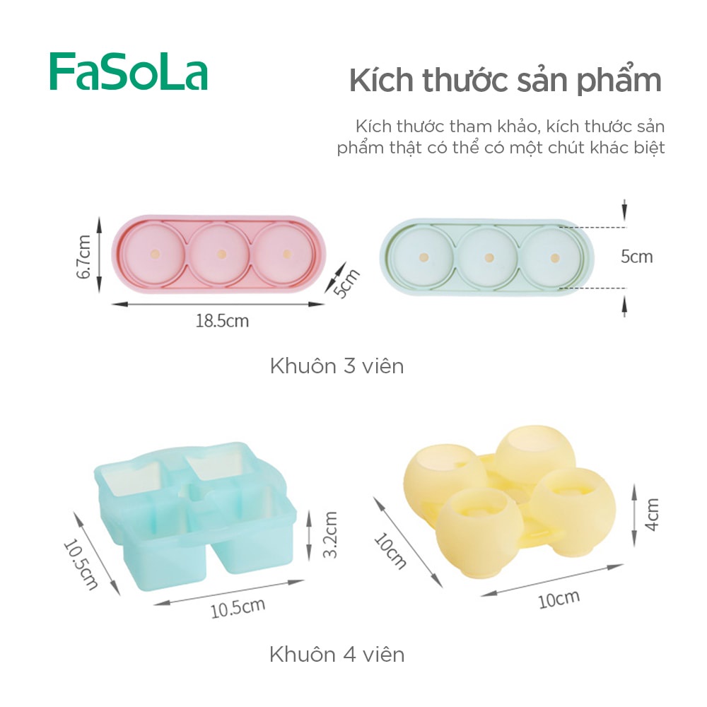 Khay silicon làm đá, trà, trái cây viên tròn, vuông FASOLA FSLYL-006; FSLYL-005