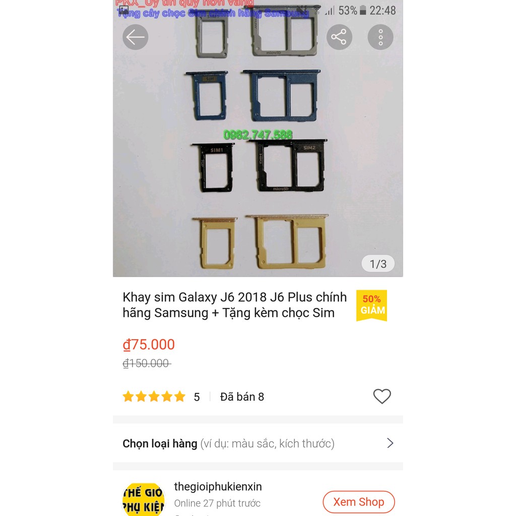 Khay sim Galaxy J6 2018 | Galaxy J6+ chính hãng Samsung + Tặng kèm chọc Sim chính hãng J600 J610