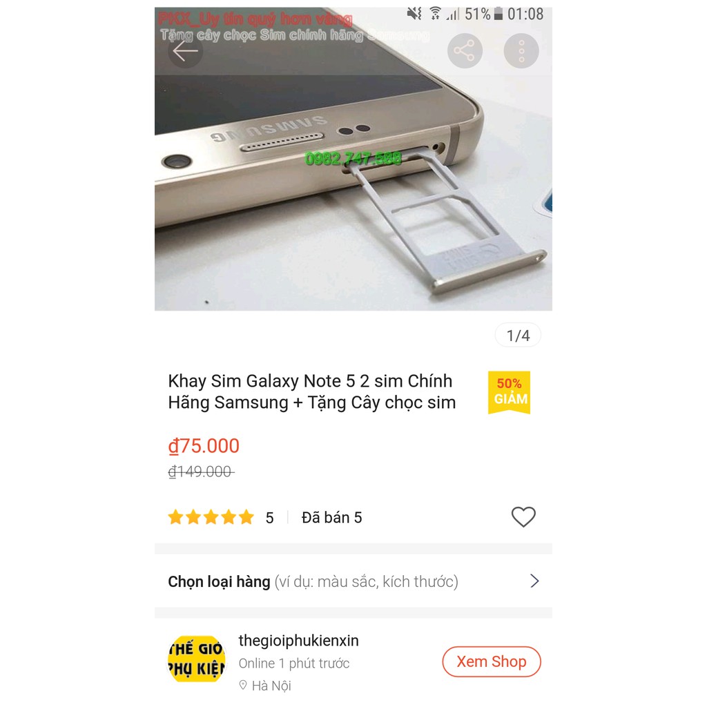 Giới thiệu Khay Sim Galaxy Note 5 2 sim Chính Hãng Samsung N920 + Tặng Cây chọc sim chính hãng