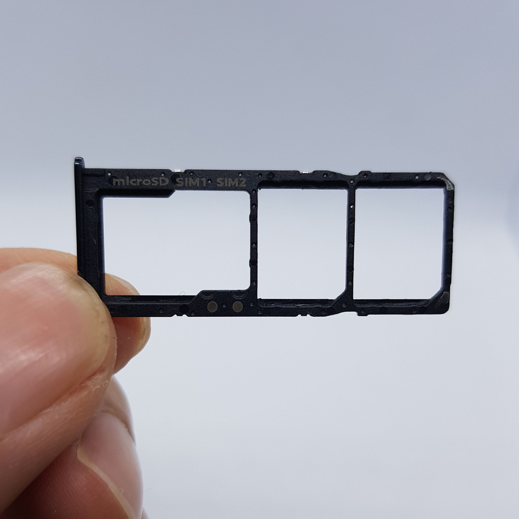 - Khay gồm khay sim 1, khay sim 2 và khay thẻ nhớ, có thể sử dụng đồng thời 2 sim và 1 thẻ nhớ.