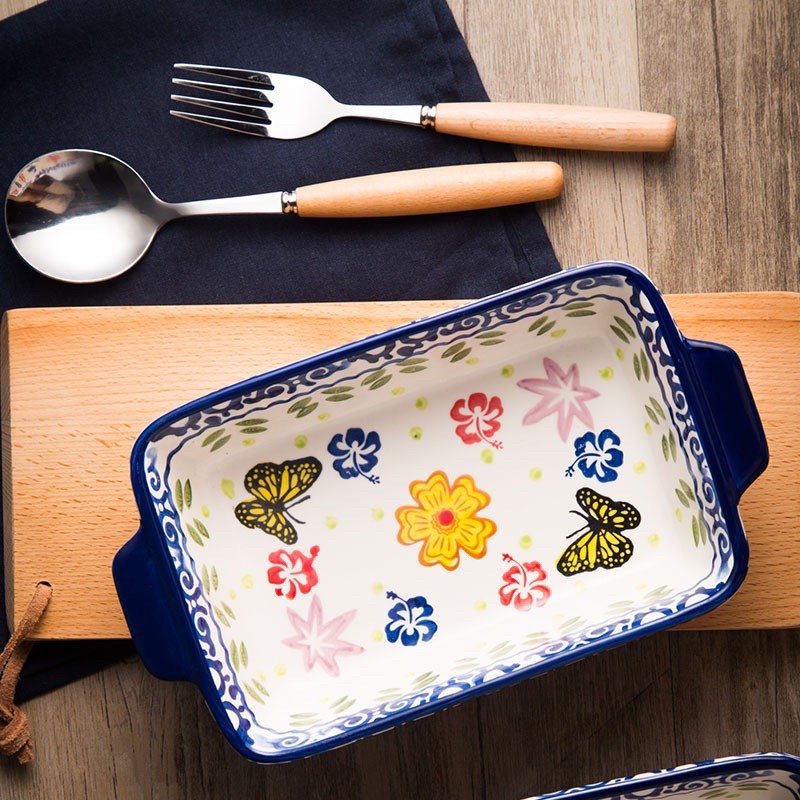 Nhà cửa & Đời sống > Trang trí nhà cửa > Bình trang trí || Khay sứ chữ nhật 2 tai Hoa bướm thổ cẩm Bắc ÂuCòn hàng