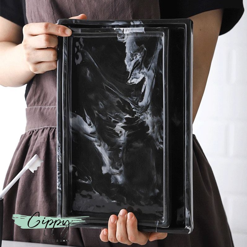 Khay sứ vân đá vân marble đen sang trọng - Home Decor - Gippy Decor