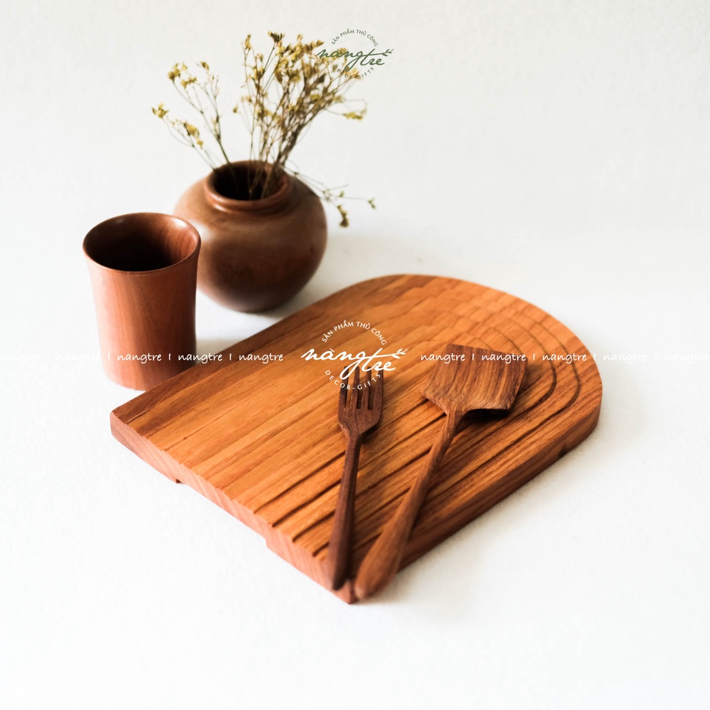 Giới thiệu Khay thớt gỗ đỏ trang trí, decor