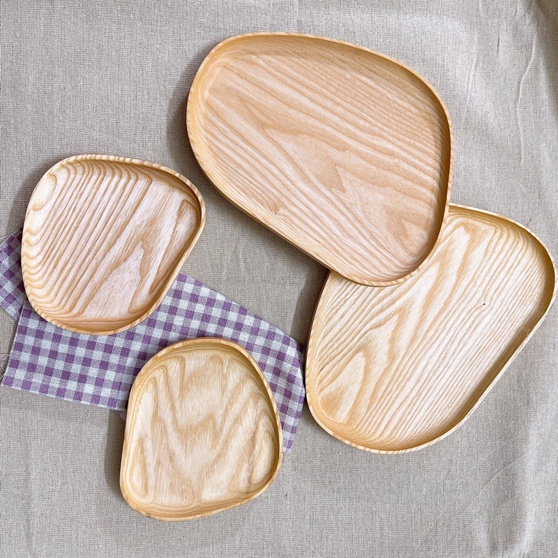 Khay gỗ sồi ovan đựng đồ ăn tráng miệng phong cách Nhật Bản ( khay hình viên sỏi )Chất liệu: gỗ sồi