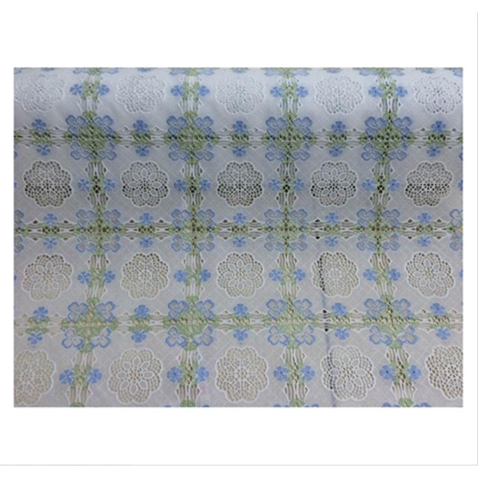 - Thành phần: Hoa trắng viền xanh, Nhựa PVC không thấm nước, có thể giặt được với máy giặt