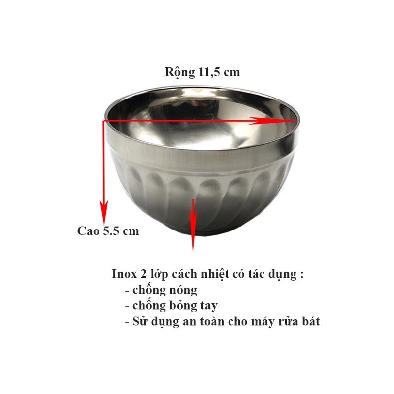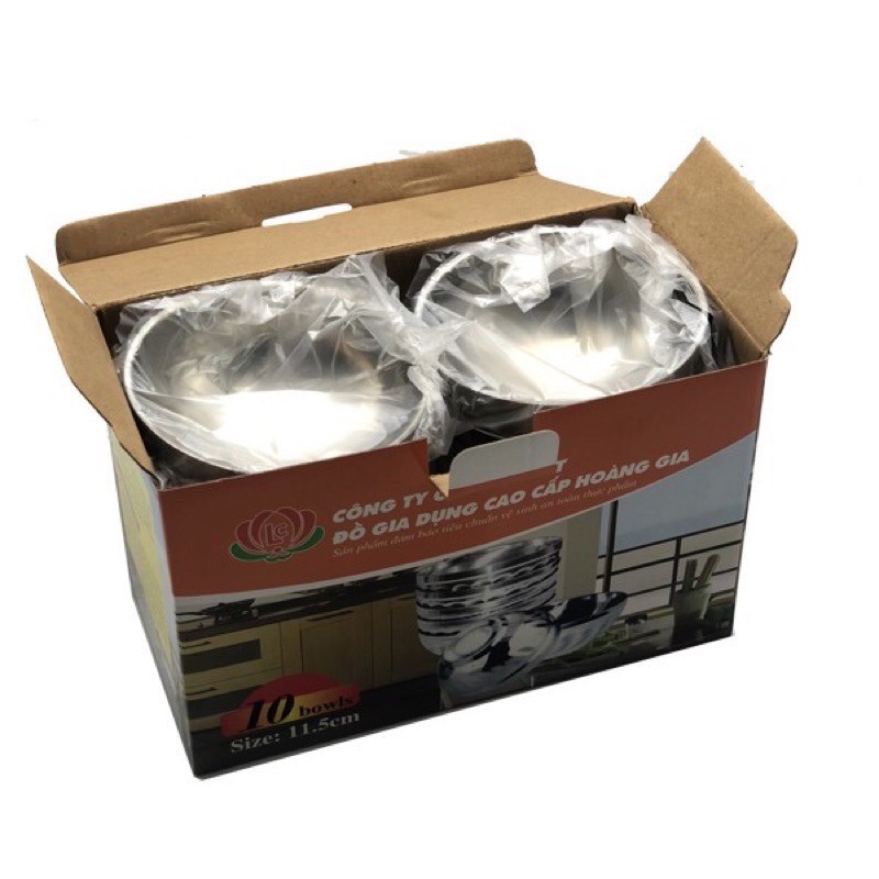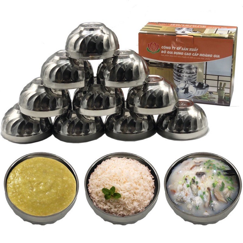 Nhà cửa & Đời sống > Bộ đồ bàn ăn > Tô || [KHO SỈ] Bộ 10 bát cơm Inox 2 lớp cách nhiệt Hoàng Gia mẫu xoắn cỡ 11,5cmCòn hàng