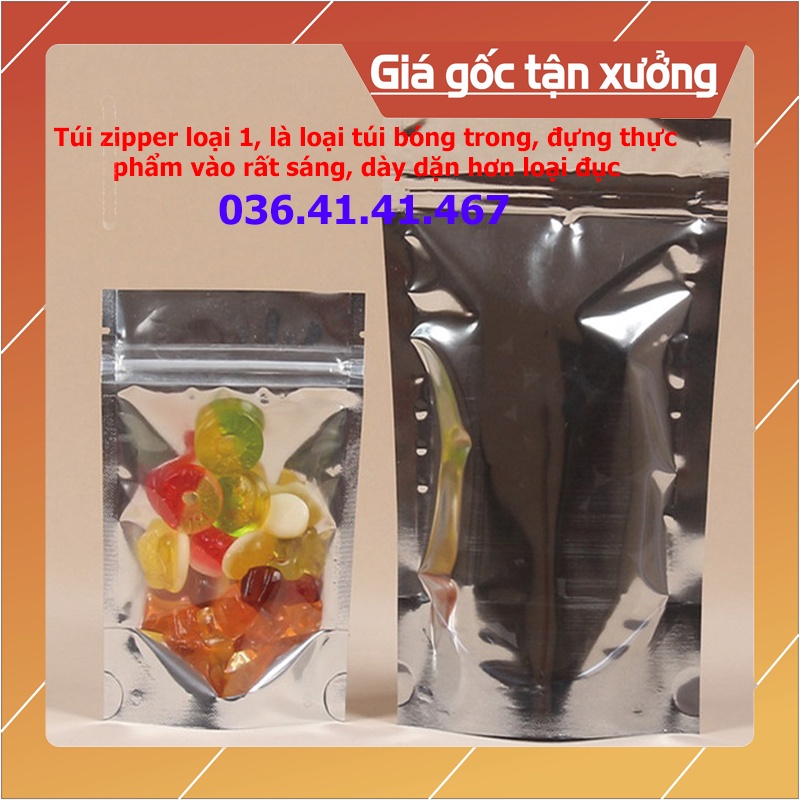 Nhà cửa & Đời sống > Dụng cụ chăm sóc nhà cửa > Túi nilon & túi rác || [Kho Xưởng] Combo 100 Túi zipper 1 mặt bạc, 1 mặt trong đáy đứng đựng thực phẩm, hàng khôCòn hàng
