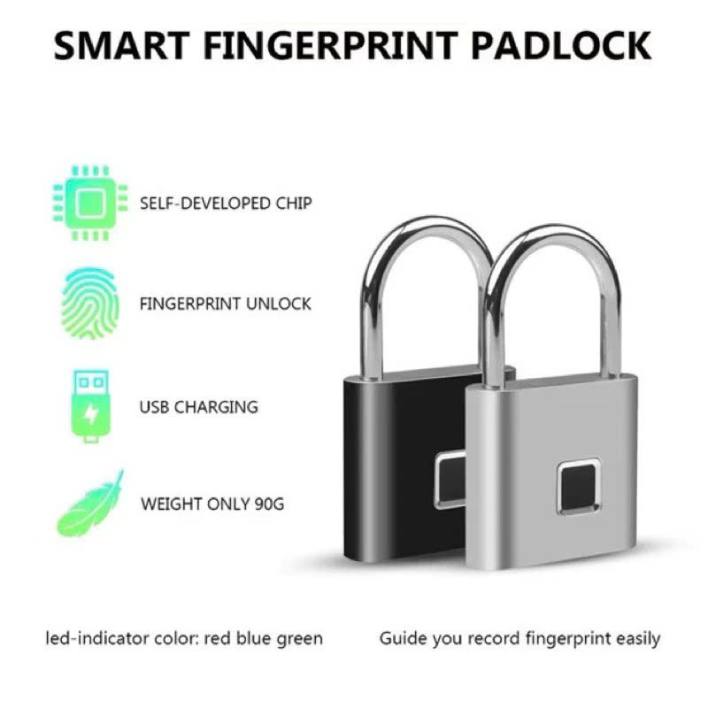 Ổ Khóa Cảm Ứng Vân Tay Thông Minh – Mẫu Mới, Chống Trộm Chuyên Nghiệp, Có Sạc Pin