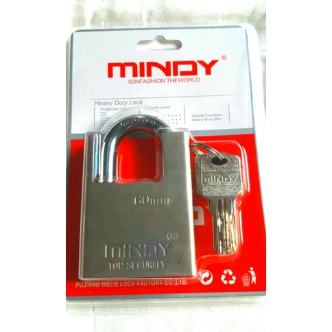 Ổ khóa chống cắt 6 phân (60mm) Mindy thép,hàng nhập khẩu,chất lượng cao,bảo đảm độ an toàn tuyệt đối cho tài sản của bạn,đặc biệt với bộ chìa khóa loại muỗng,đem đến độ an toàn và bảo mật đặc biệt hơn so với các loại chìa khóa thông thường trên thị trường rất dễ bị làm giả và sao chép,ổ khóa bằng thép không gỉ,chống được gỉ sét thích hợp cho những khu vực ở ngoài trời,1 bộ ổ khóa gồm 1 ổ cái và 4 chìa đực,phù hợp cho những gia đình đông người,hoặc những căn hộ tập thể,những nhà trọ và những văn phòng cao ốc hiện đại.Giá HYDX