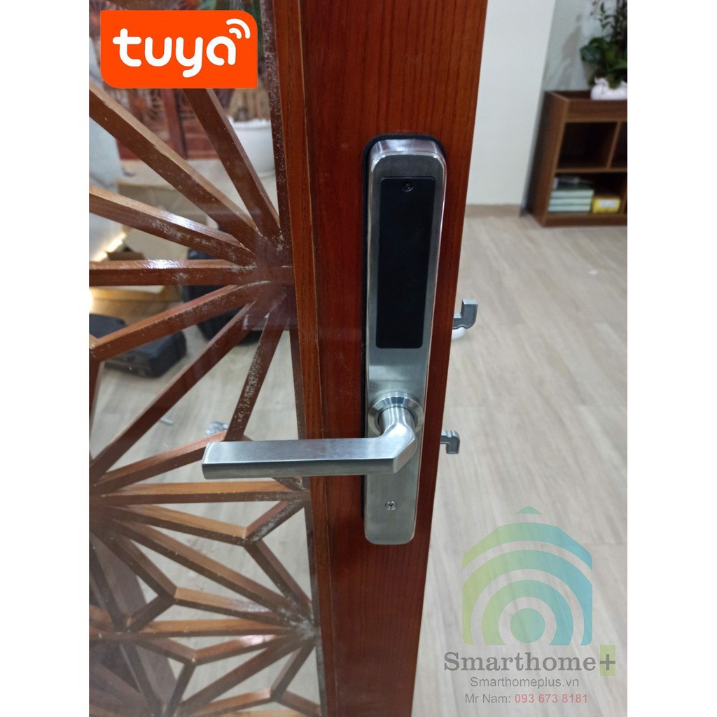 Khoá cửa xoay dạng tay vặn kết nối wifi sử dụng app Tuya Smart nhận biết được từng người và lưu vào bộ nhớ lịch sử đăng nhập thông báo về điện thoại.
