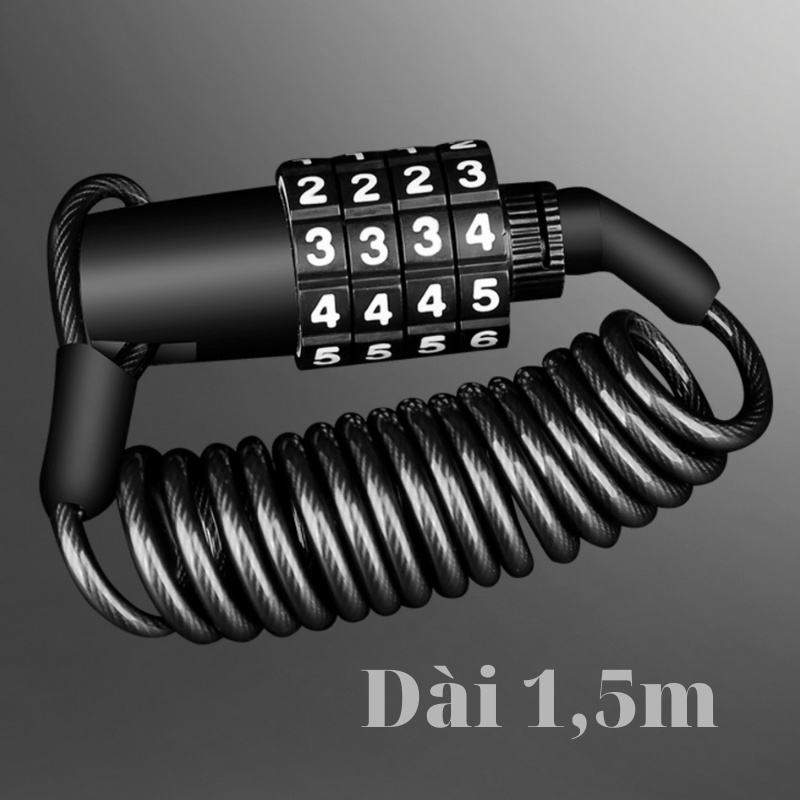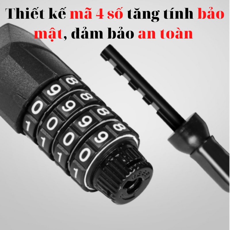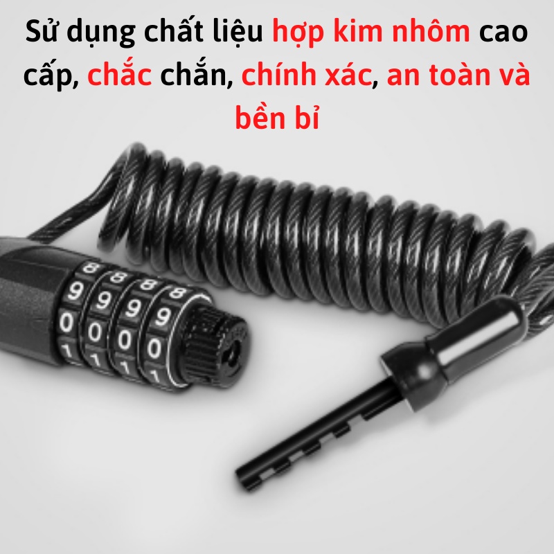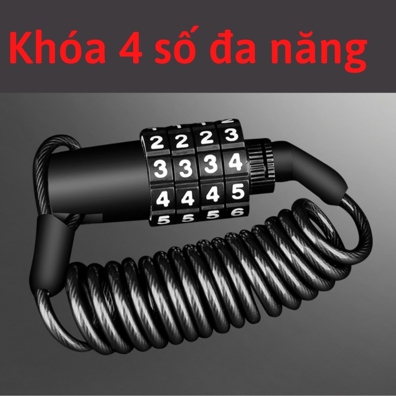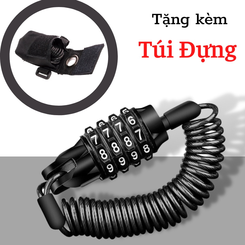 Khóa dây chống trộm mật mã 4 số khóa xe đạp an toàn chắc chắn không cần chìa khóa tiện lợi, tặng kèm túi đựng