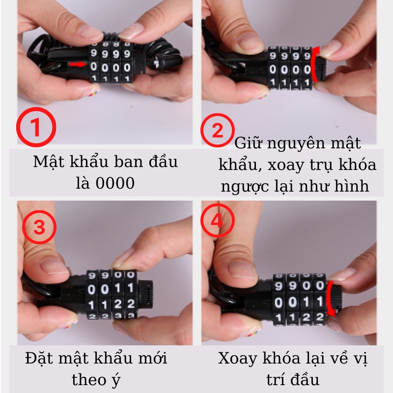Giới thiệu Khóa dây chống trộm mật mã 4 số khóa xe đạp an toàn chắc chắn không cần chìa khóa tiện lợi, tặng kèm túi đựng