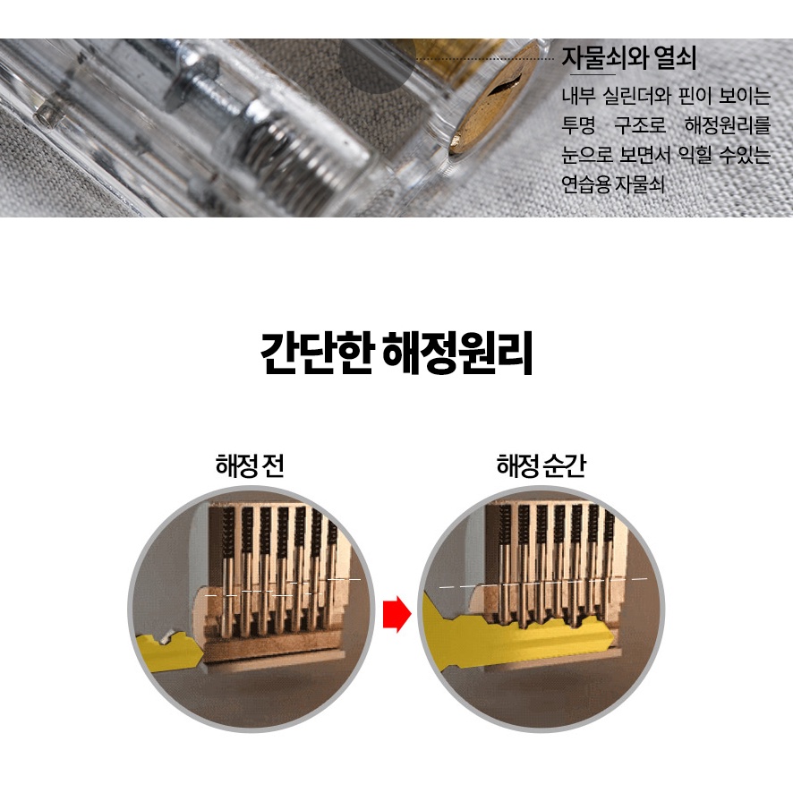 Đây là cấu trúc đơn giản nhất để hiểu cách thức hoạt động của chốt khóa và chìa khóa bên trong ổ khóa và cơ chế hoạt động của khóa. Đây là một ổ khóa thực hành bao gồm hai chìa khóa. Đây là bộ dụng cụ dành cho người mới bắt đầu.