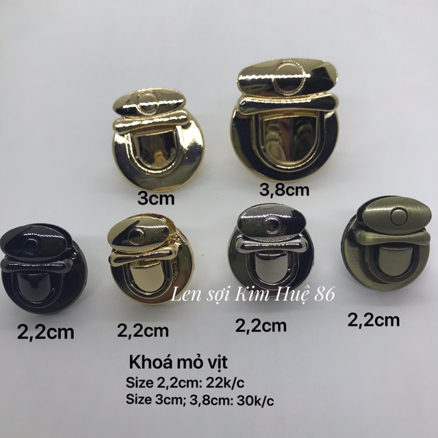 Khoá mỏ vịt có 3 size 2,2cm; 3cm; 3,8cmSize 2,2cm có các màu: đen, bạc, vàng, đồng