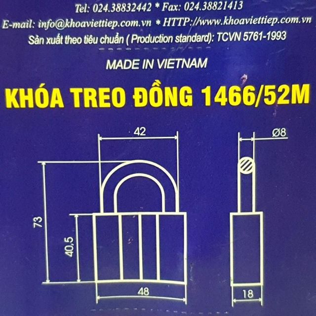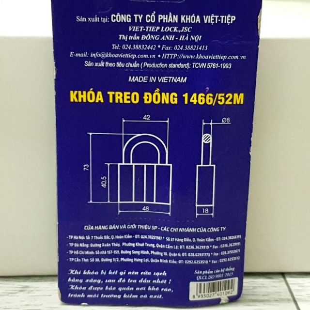 KHÓA TREO ĐỒNG VIỆT TIỆP 1466/52M CAM KẾT VIỆT TIỆP CHÍNH HÃNG 100%