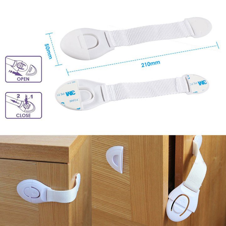 - Gồm: 01 x Khóa ngăn kéo, tủ lạnh trẻ em (bản lớn, keo 3M dính chắc)