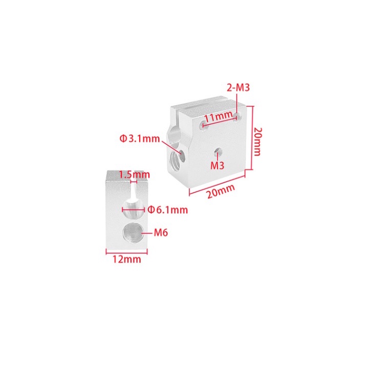 Khối nhôm dẫn nhiệt MK8,E3Ddành cho máy in 3DCó tác dụng gia nhiệt đầu in cho máy in 3D, được gia công CNC chính xác và được làm từ chất liệu nhôm nên dẫn nhiệt rất tốt.