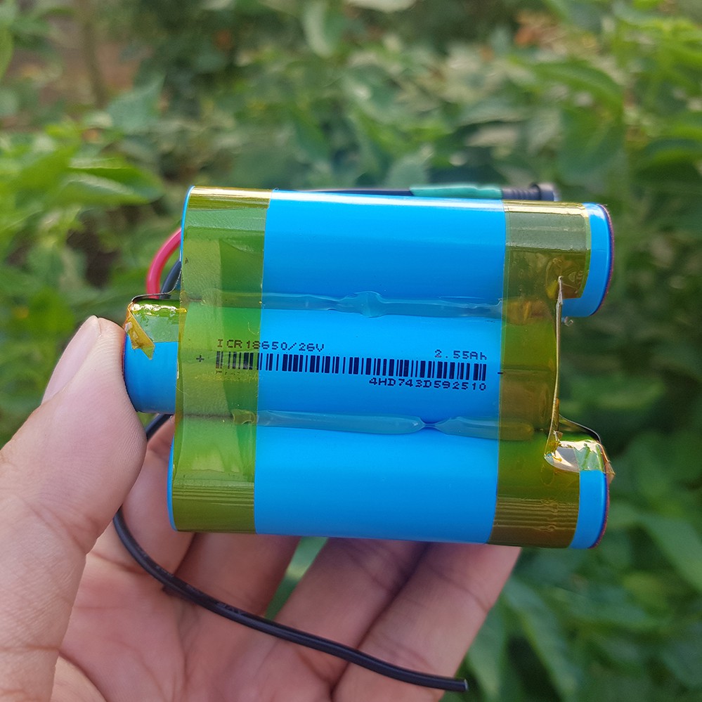 Sản phầm hiện tại sử dụng cell Xanh (1 cell ) 2550mAh - 5c (10A). (xem hình test dung lượng phía trên)