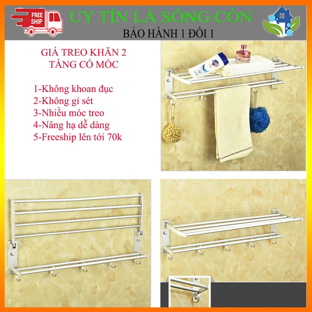 [KHÔNG KHOAN ĐỤC - KHÔNG GỈ SÉT] Gía Treo Khăn Nhà Tắm 2 Tầng