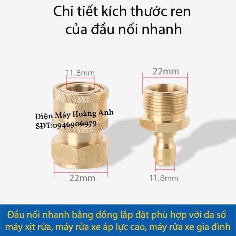Bộ khớp nối nhanh cho máy xịt,rửa xe cho gia đình tiện dụng (Bộ Bi ren 22mm)