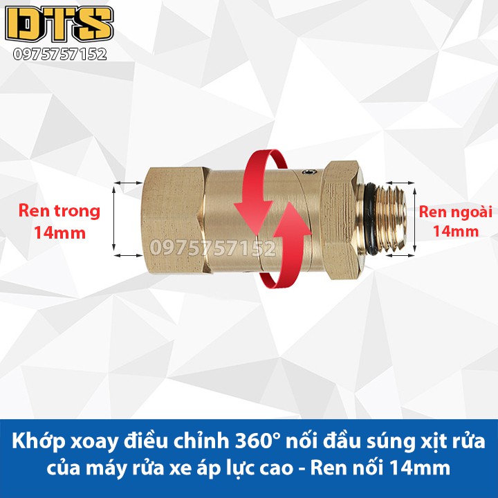Khớp xoay điều chỉnh 360 độ nối đầu súng xịt rửa của máy rửa xe áp lực cao - Ren nối 14mm