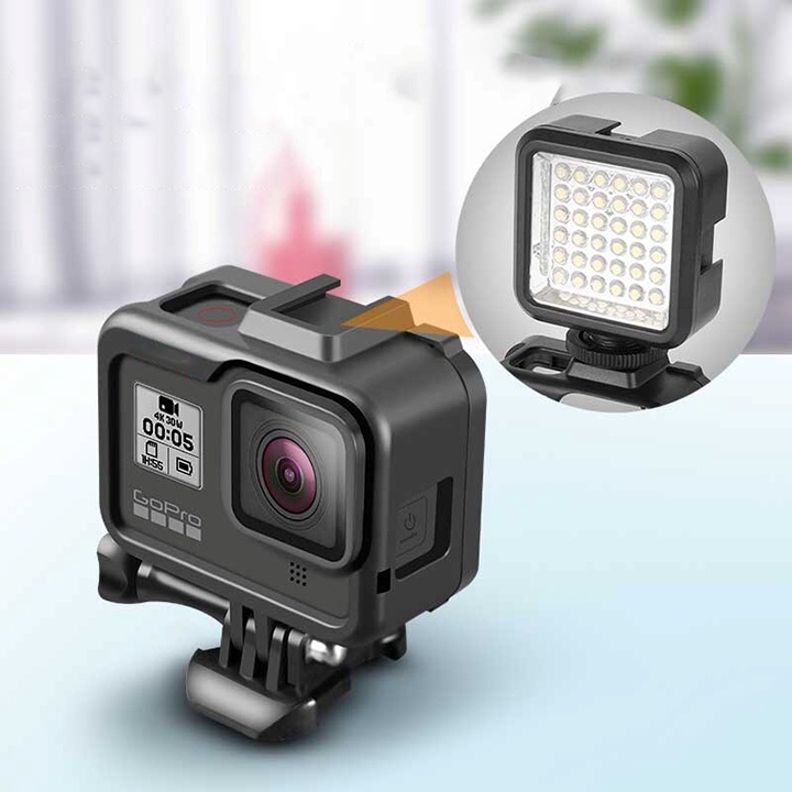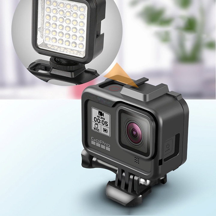 Cameras & Flycam > Phụ kiện máy ảnh > Khác || KHUNG BẢO VỆ GOPRO 8 TÍCH HỢP KHE GẮN LED MICCòn hàng