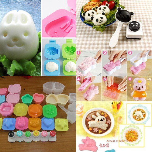 Khuôn cơm Bento với nhiều hình độc đáo được thiết kế để nắm cơm theo các hình ảnh ngộ nghĩnh một cách nhanh chóng và đơn giản nhất. Đây là sản phẩm lý tưởng để tạo thành những hộp cơm đẹp mắt, sống động mà không cần mẹ phải quá khéo léo.Chúng cũng là các phụ kiện làm bếp dễ thương để thêm vào bộ sưu tập của mẹ.,