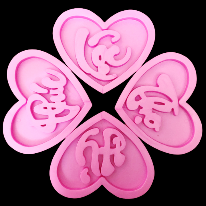 Khuôn ép xôi 4 mặt hình tim Phúc Lộc Thọ Hỷ loại 15 cm – Mã số 1811
