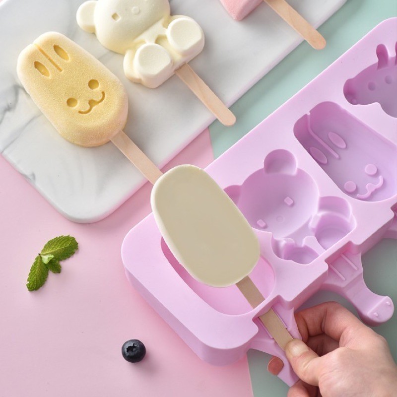 Khuôn làm kem Silicon dễ thương tăng kèm Que Gỗ (Giao Hình Ngẫu Nhiên )