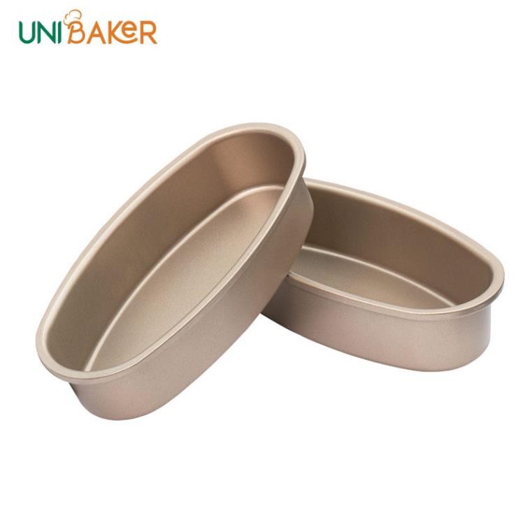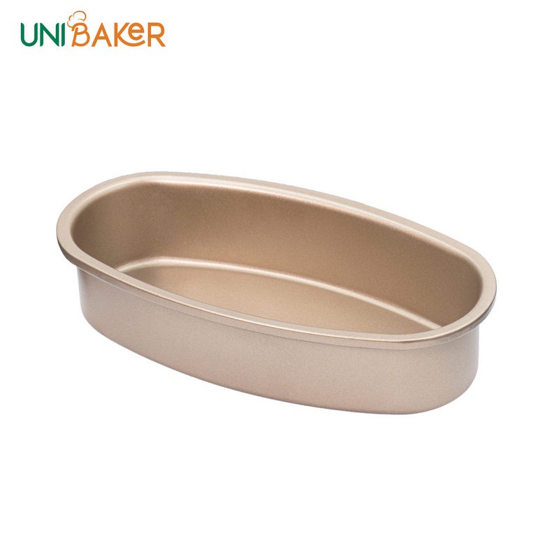 - Khuôn Oval Chống Dính Unibaker có thiết kế màu vàng sâm panh đơn giản, nhỏ gọn.