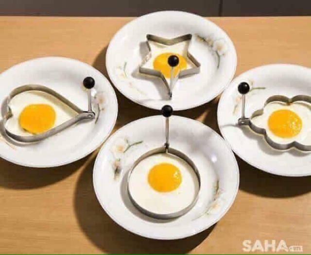 Khuôn trứng tạo hình ngộ nghĩnhVới bộ dụng cụ này, món trứng ốp của bạn sẽ tuyệt đẹp. Có hình trái tim, hình tròn, hình bông hoa, hình ngôi sao. Sử dụng rất đơn giản, bạn chỉ cần cho khuôn lên chảo, cho dầu vào, rồi đập trứng vô là xong. Cùng 1 chiếc chảo, bạn có thể ốp được 4 quả trứng cùng lúc. Thật tiện phải ko nào?!