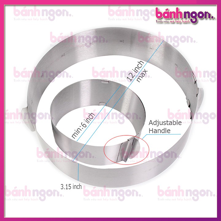 Khuôn Ring Mouse Tròn Làm Bánh Tự Điều Chỉnh Kích Thước TừKích thước : Điều Chỉnh Vòng Tròn 16cm đến 30cm Cao 8cm