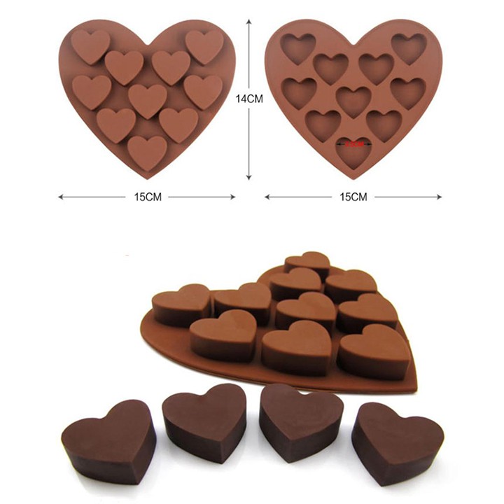 Khuôn Silicon Đổ Socola/Thạch/Đá/Kẹochipchip/Pudding Hình Trái Tim Lồng