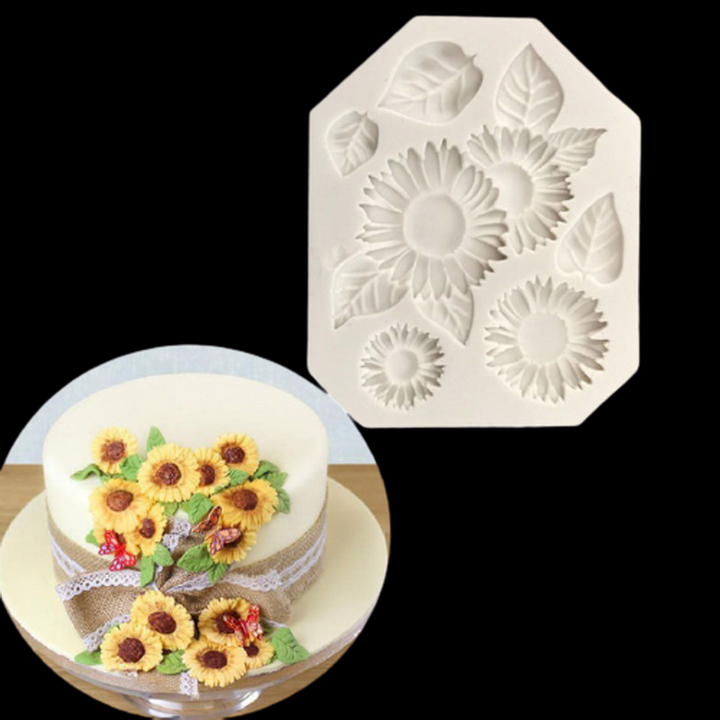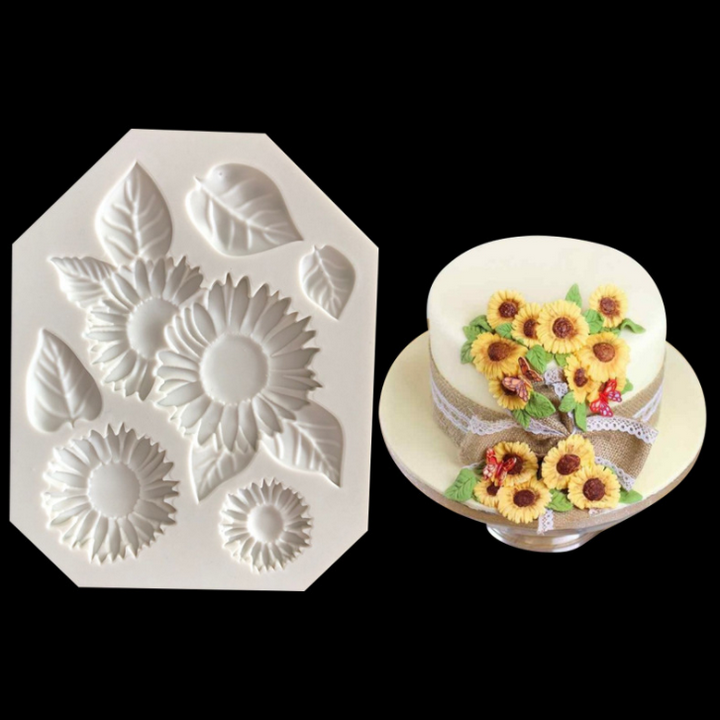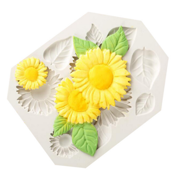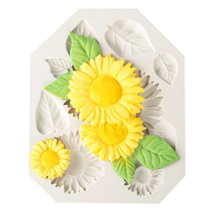 Khuôn silicon làm rau câu hoa hướng dương kèm lá - Mã số 1063