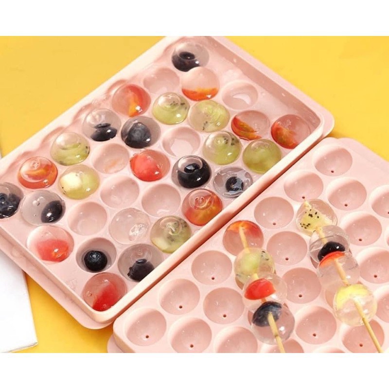 Khuôn thạch bi nhựa tròn làm hoa quả viên trái cây, khuôn rau câu, khay đá viên tròn 33 viên