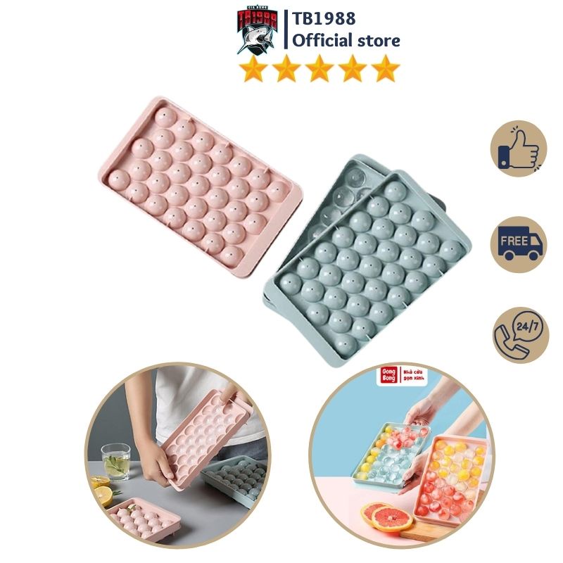KHAY LÀM ĐÁ BI TRÒN THẾ HỆ MỚI LOẠI LỚN 33 VIÊN (có 2 màu xanh, hồng, nếu muốn chọn màu vui lòng chat với shop)THIẾT KẾ 2 MẢNH ÚP VÀO NHAU GIỮ VỆ SINH TUYỆT ĐỐI